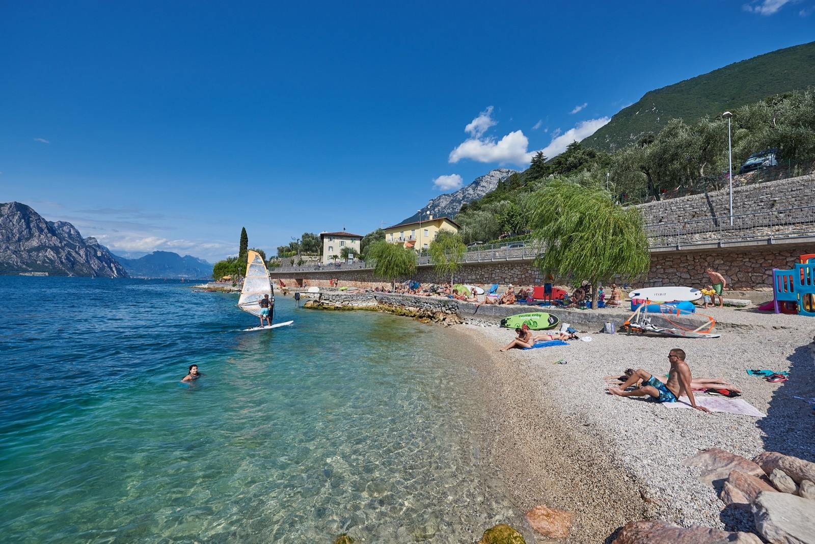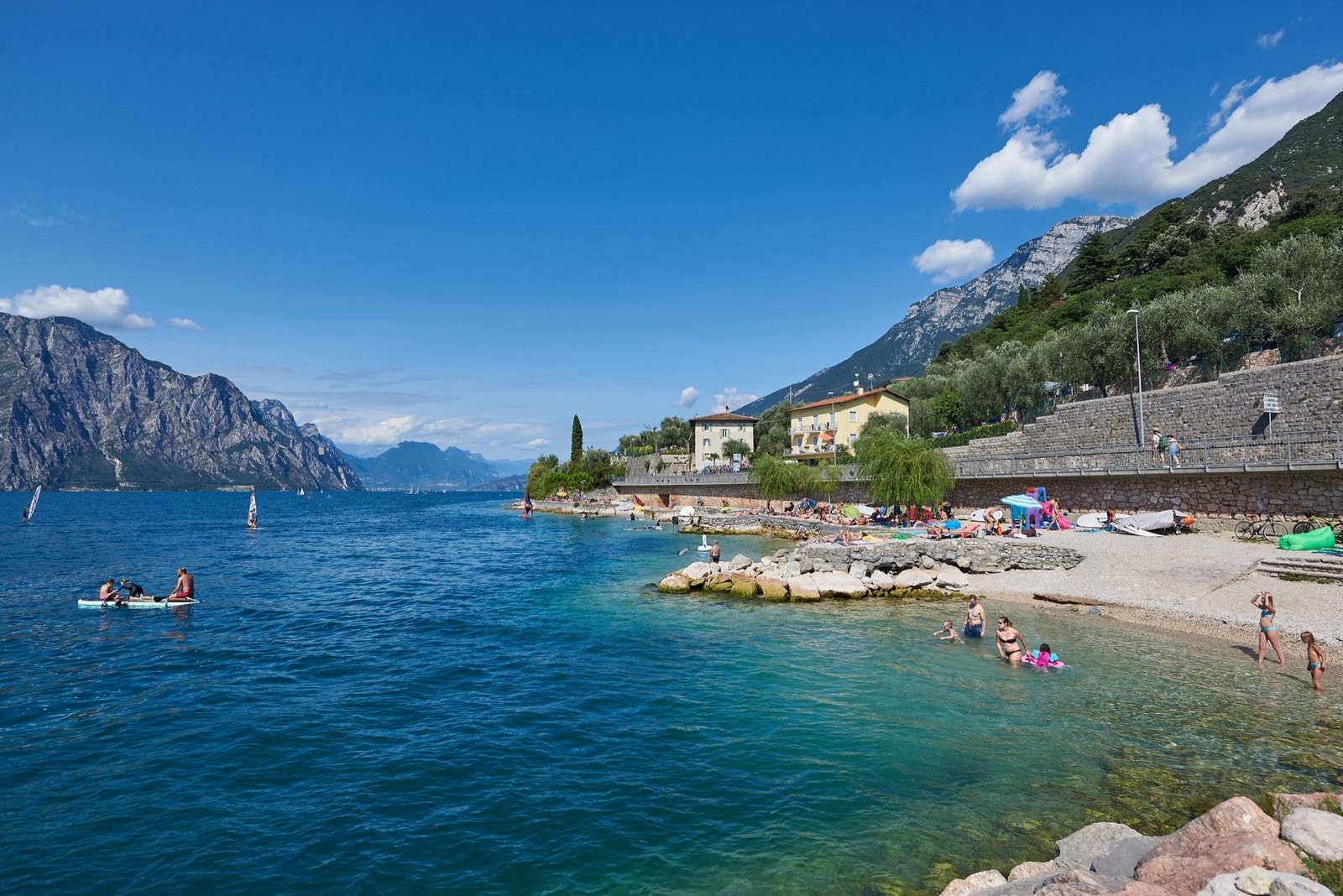 On the beautiful bike- and footway running alongside the lake's blue over the entire territory you'll find the typical Mediterranean scrub vegetation with its characteristic centuries old olives.